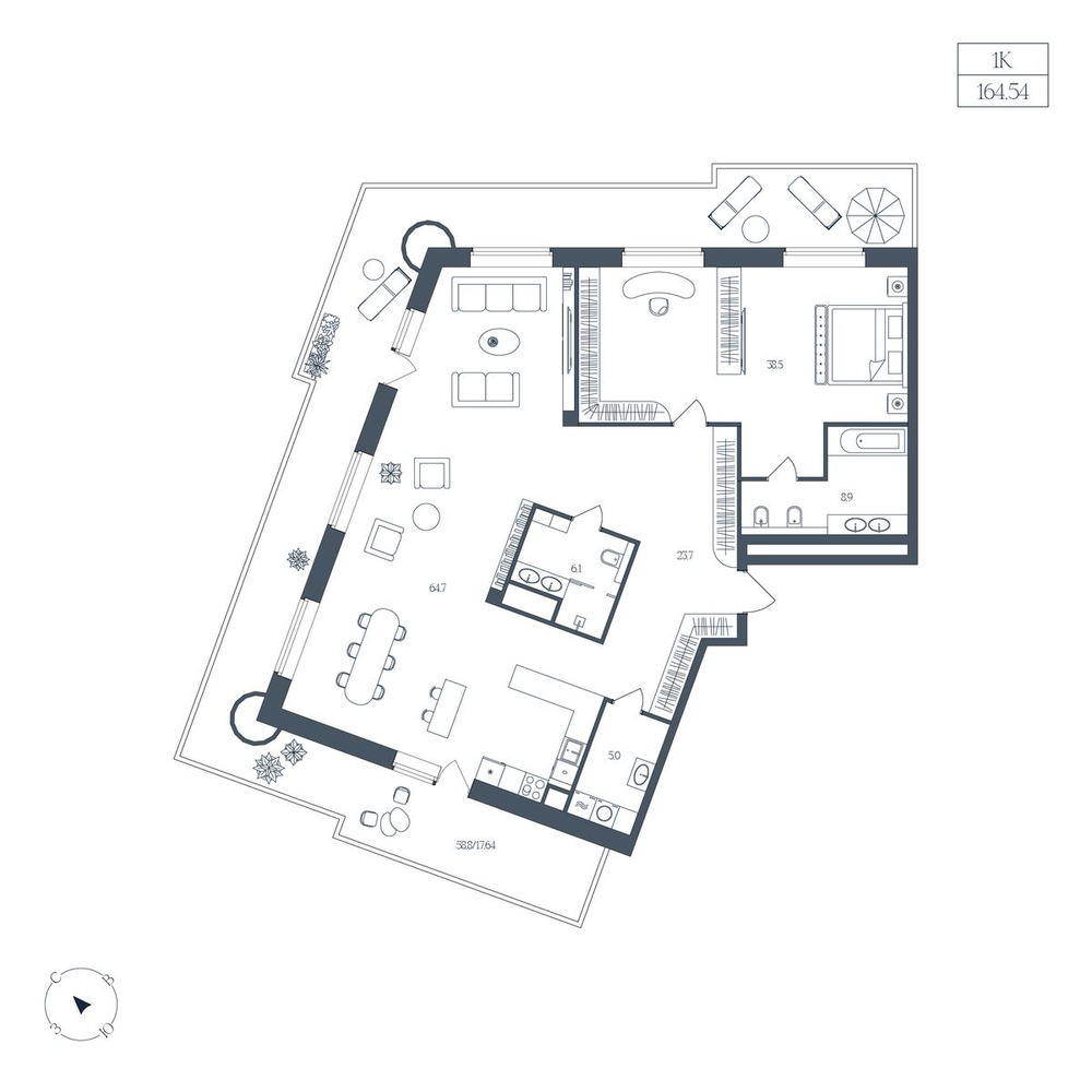 2-комнатная 150.7 м