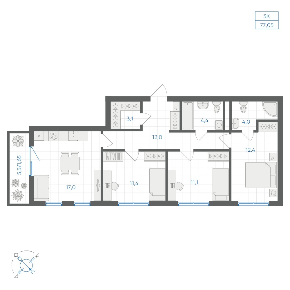 80.3 м2