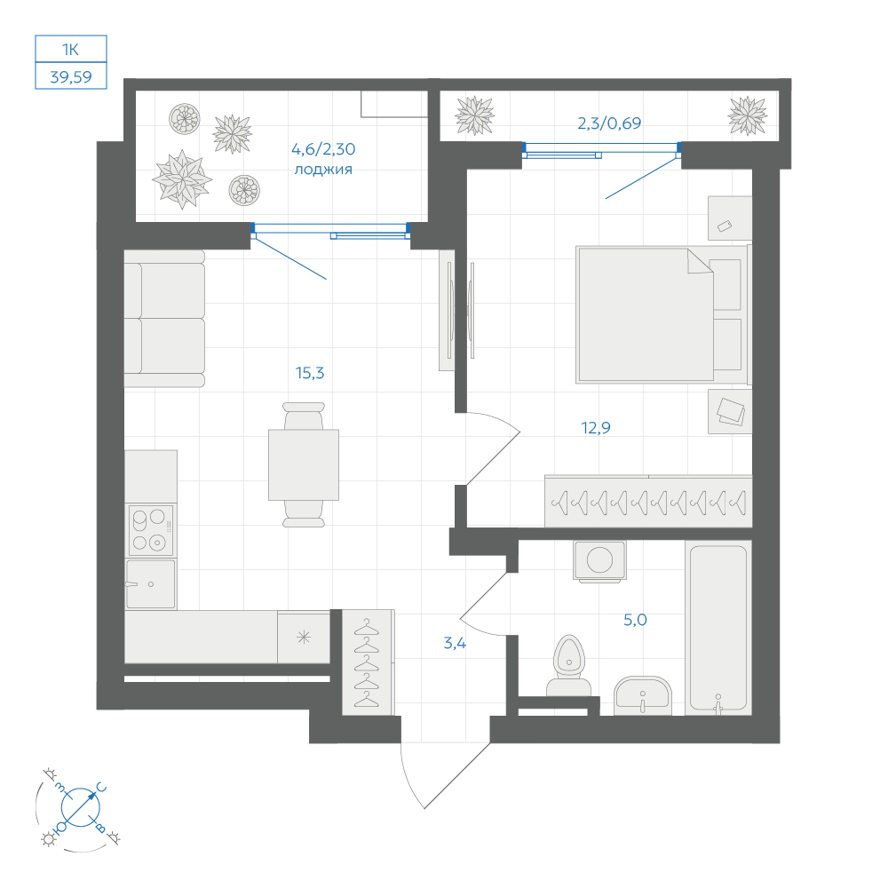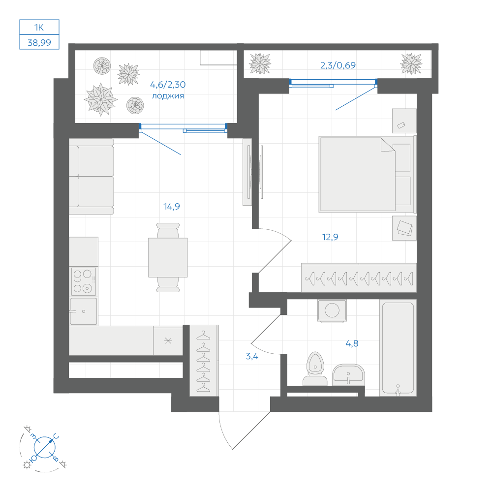 1-комнатная