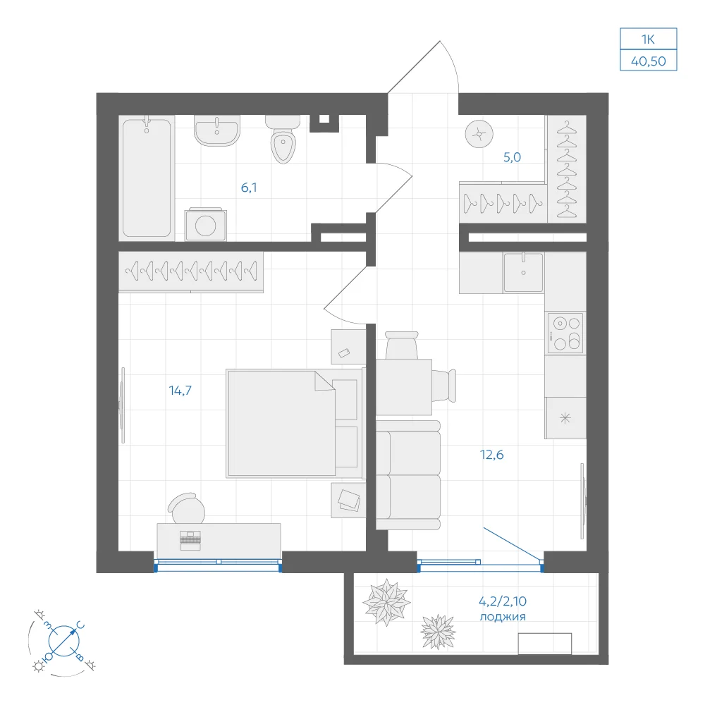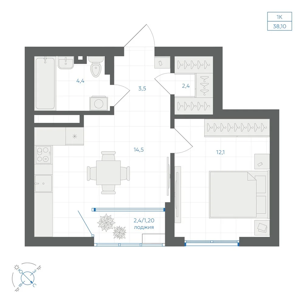 1-комнатная 37.05 м