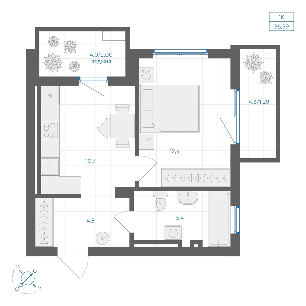1-комнатная