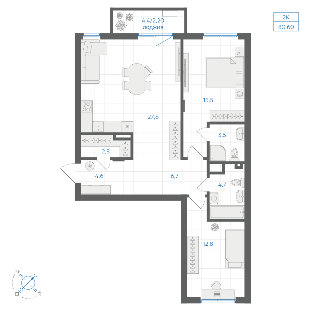 3-комнатная