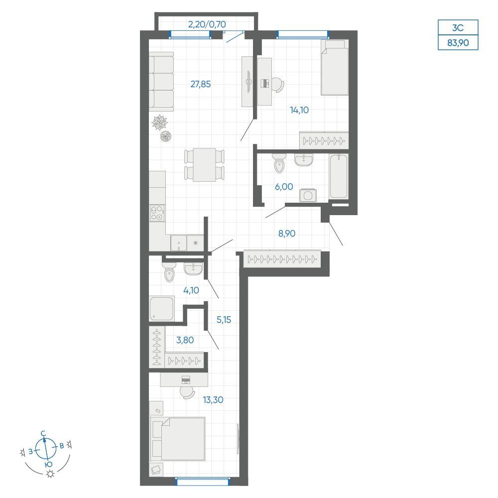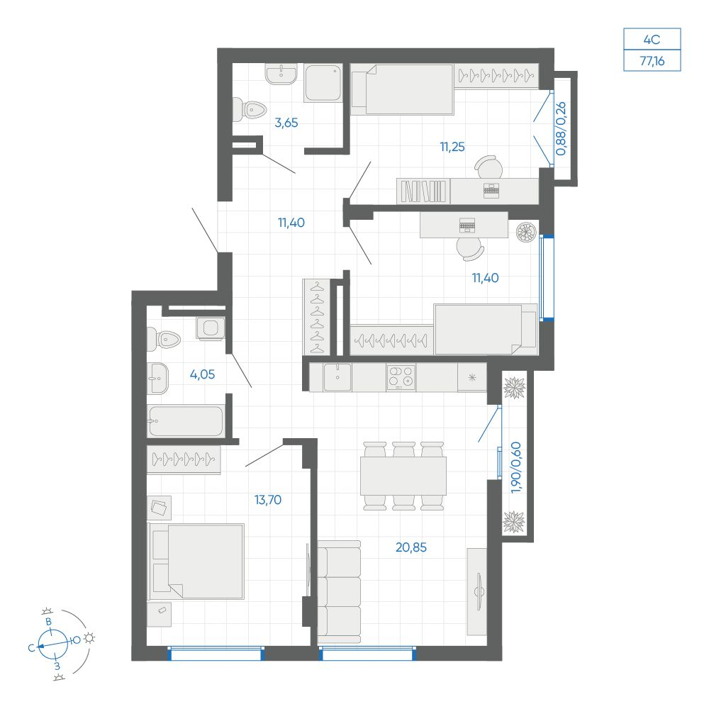 3-комнатная 75.9 м