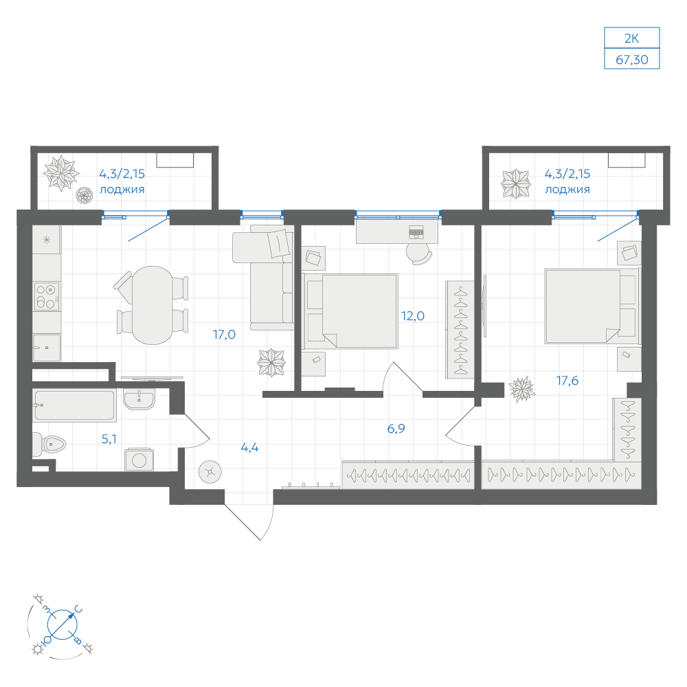 2-комнатная 64.1 м