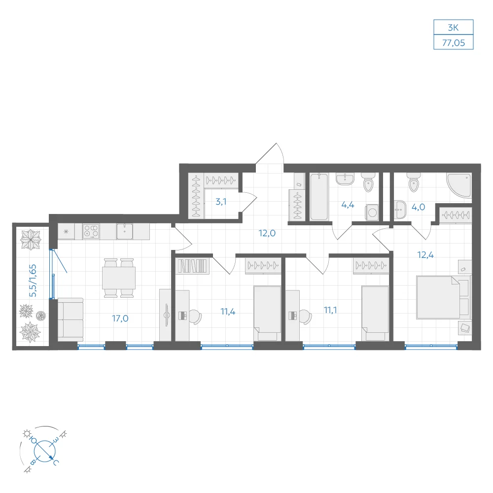 85.05 м2