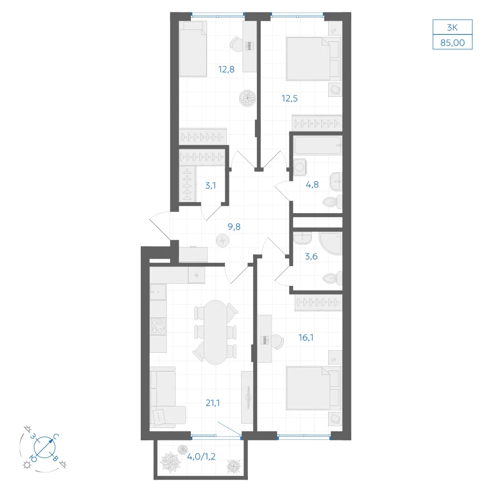 3-комнатная