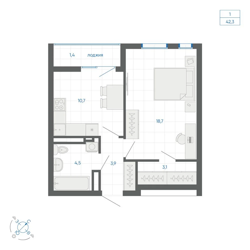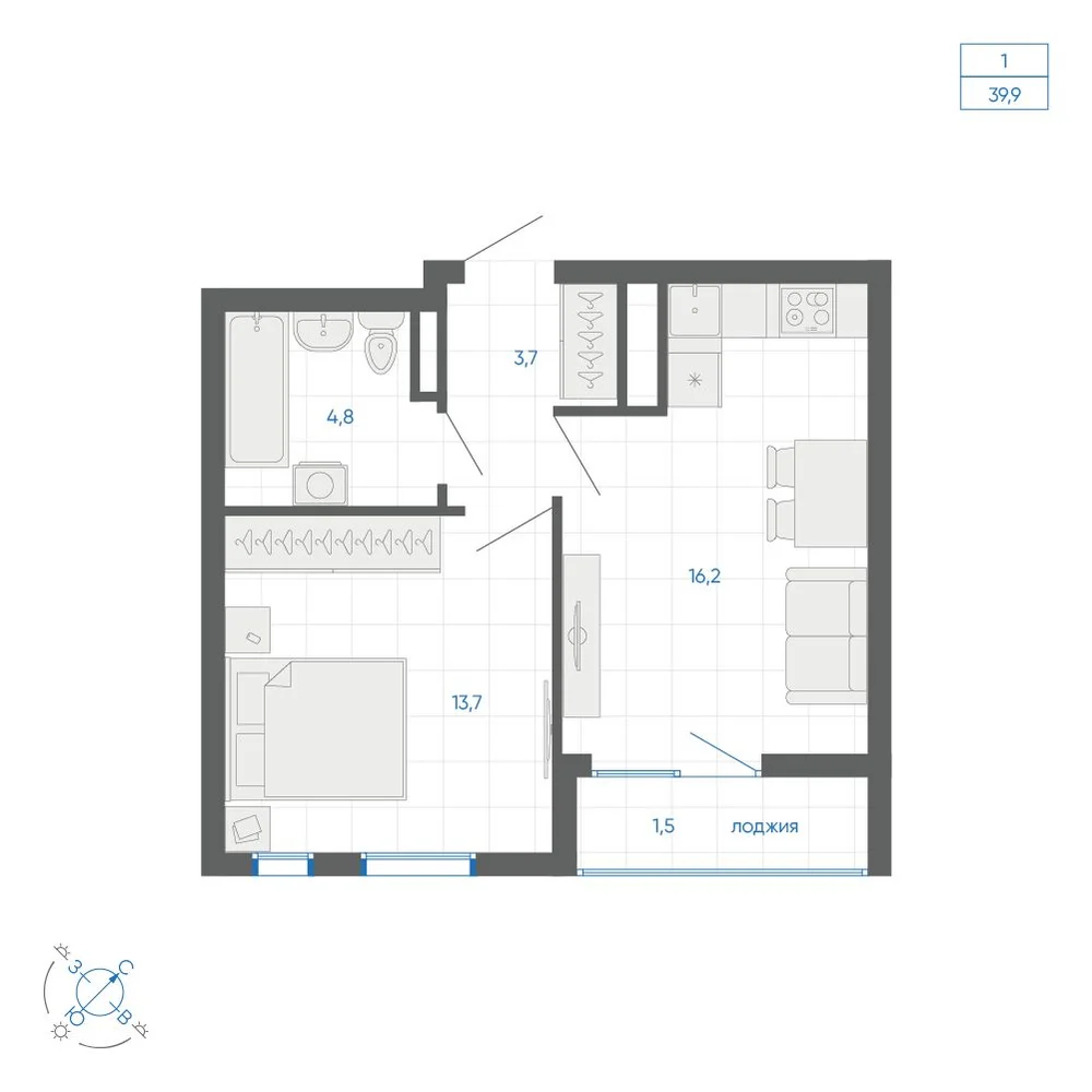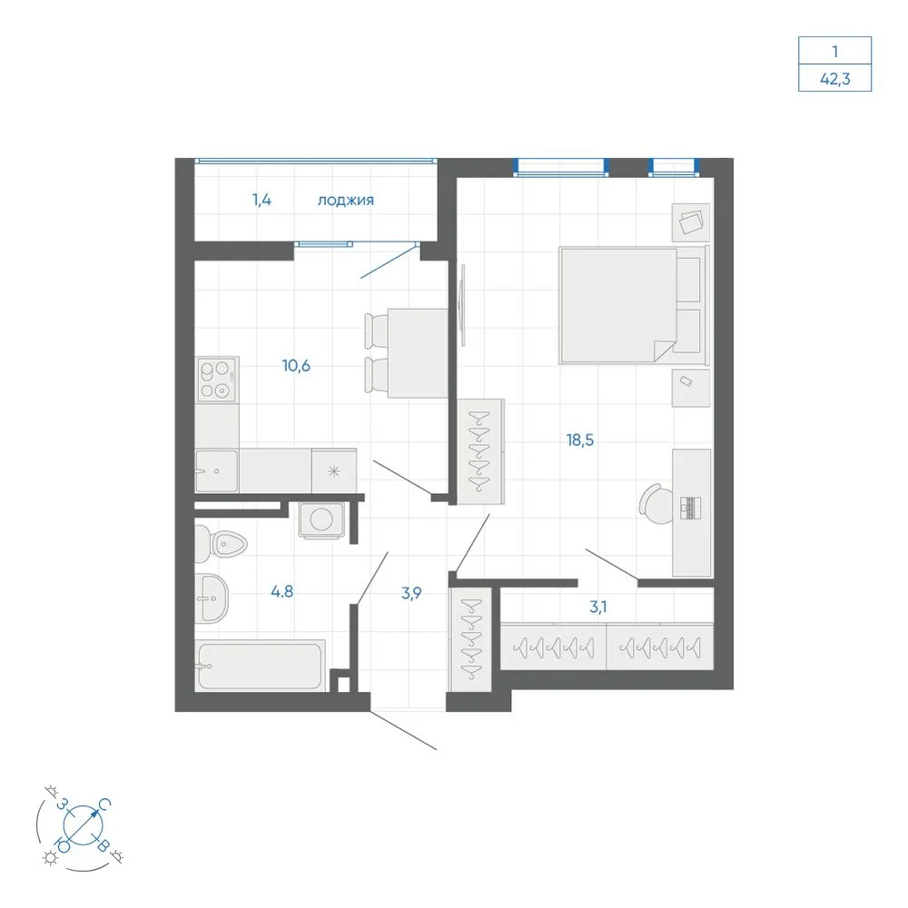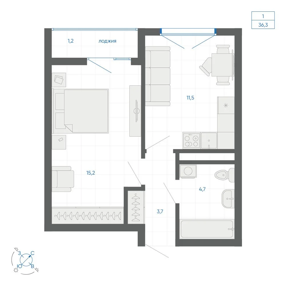 1-комнатная