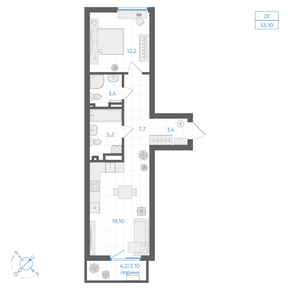 56.7 м2