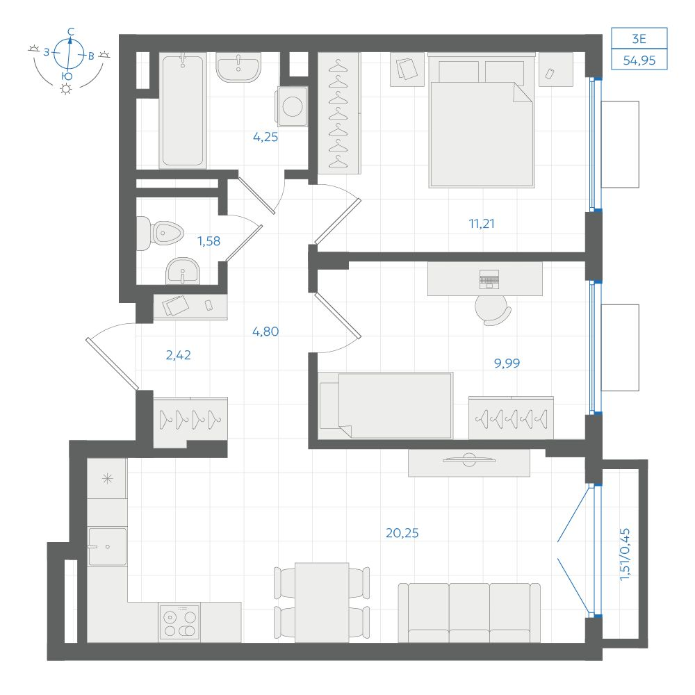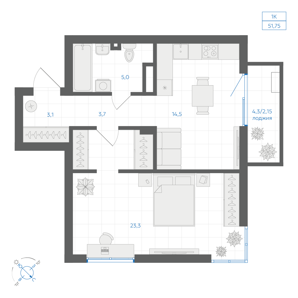 1-комнатная
