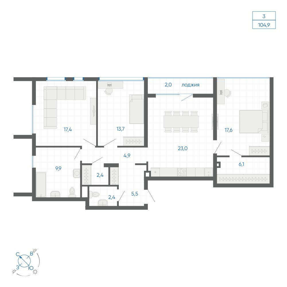 3-комнатная