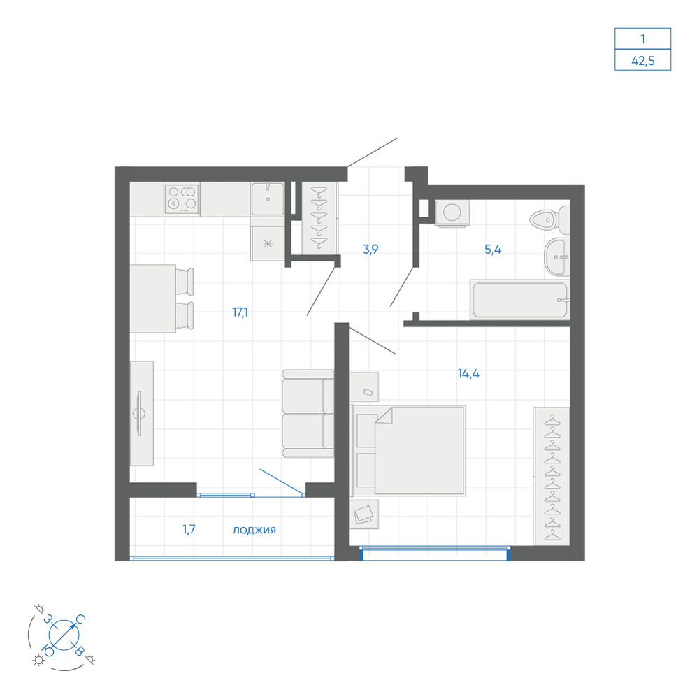 1-комнатная