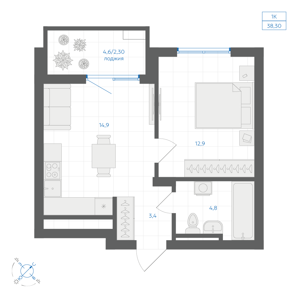 38.9 м2