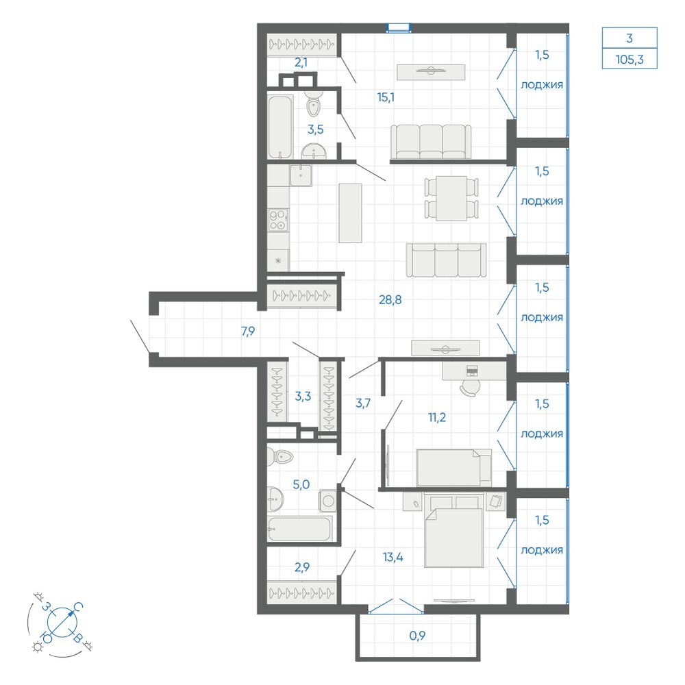 3-комнатная