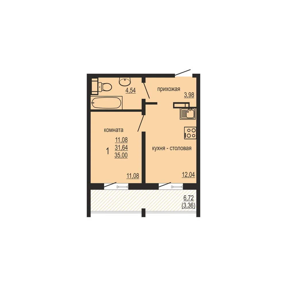 Студия  31.88 м2