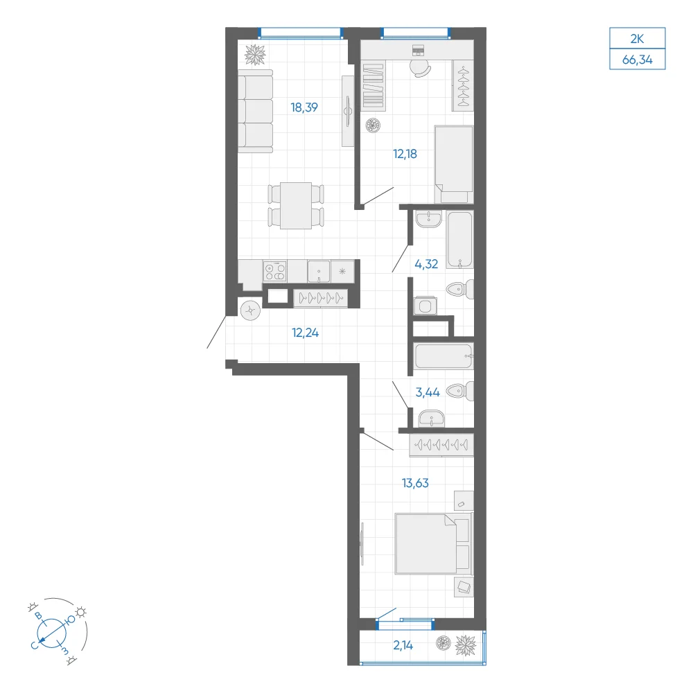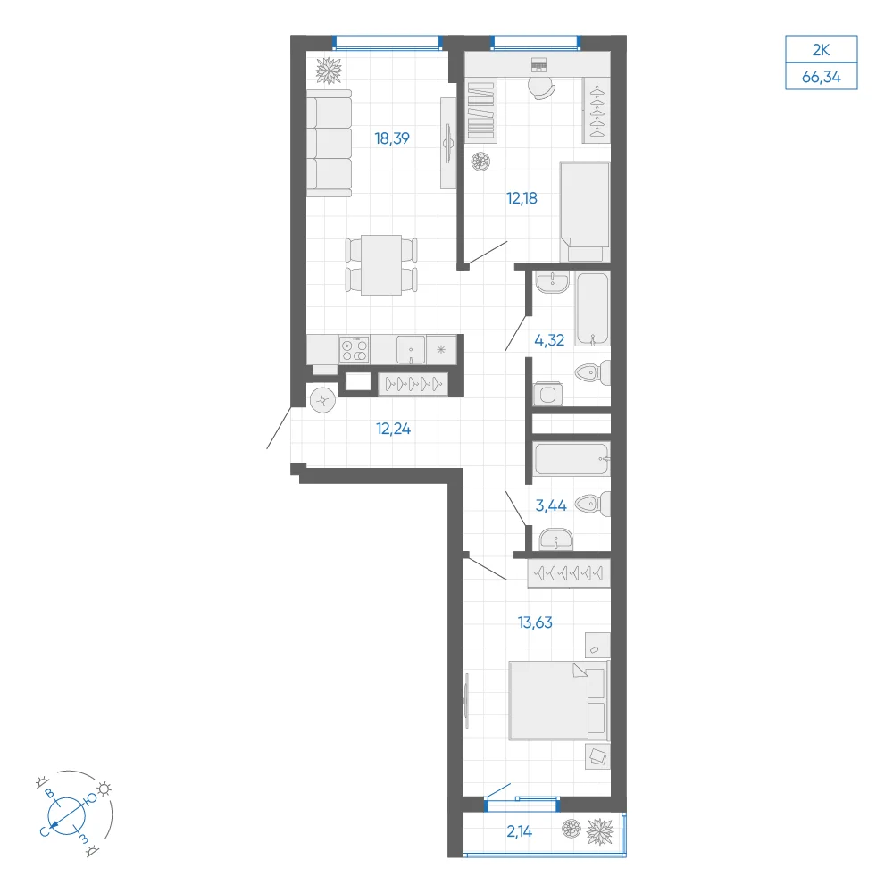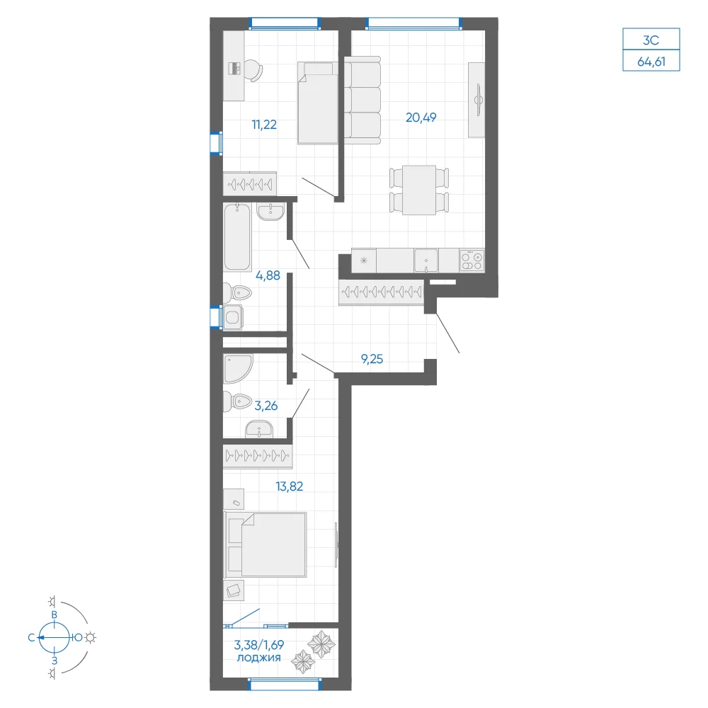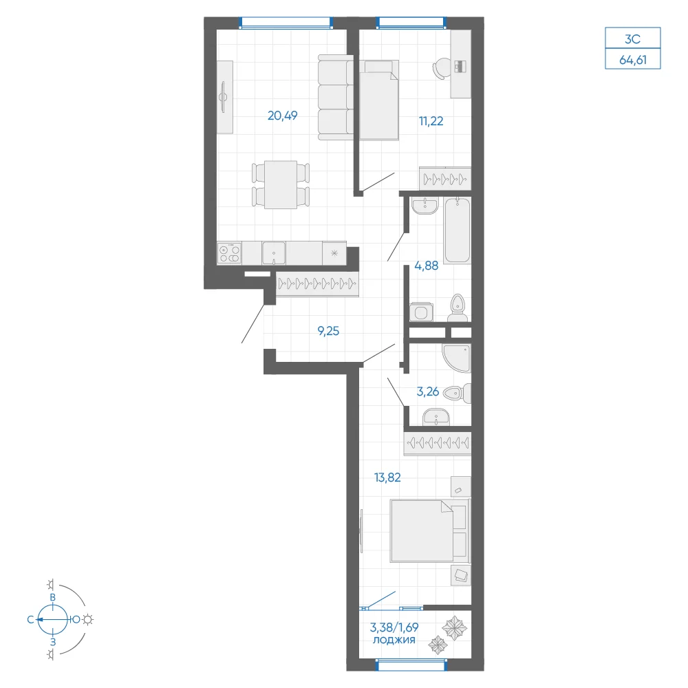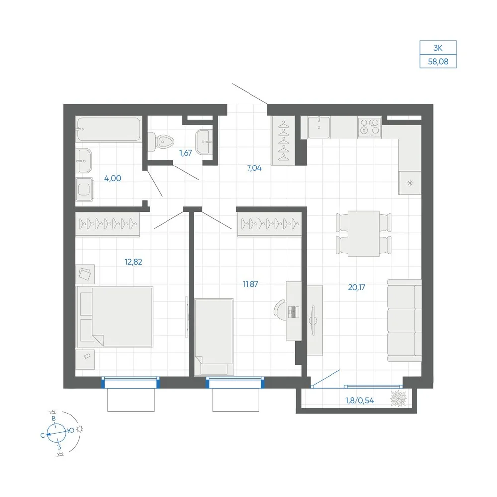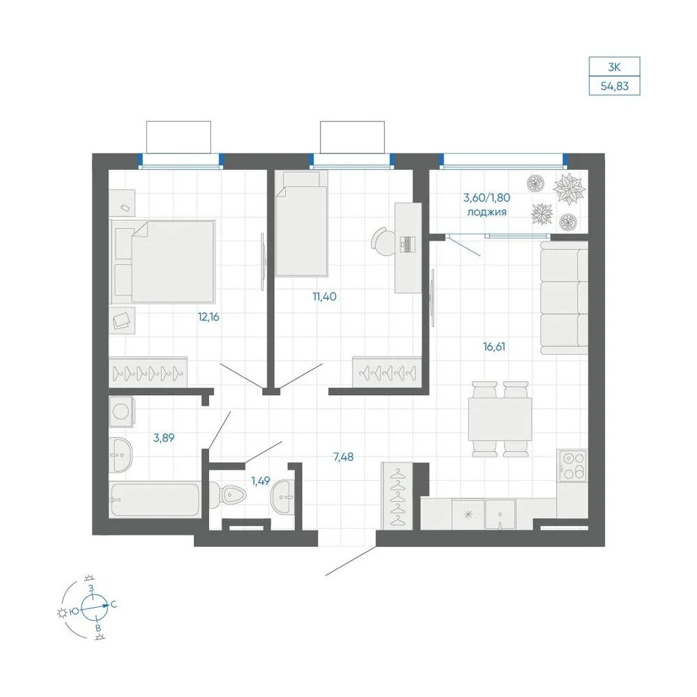1-комнатная 59.95 м
