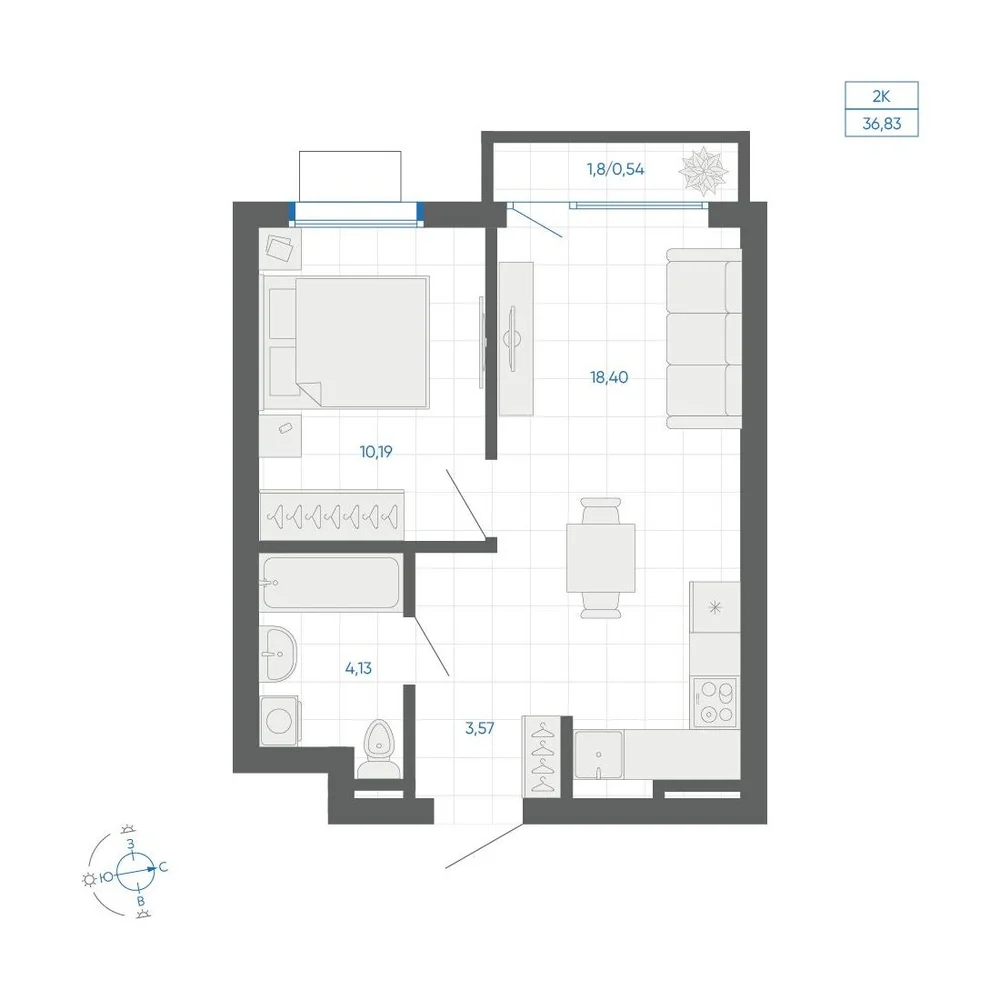 1-комнатная 35.88 м2