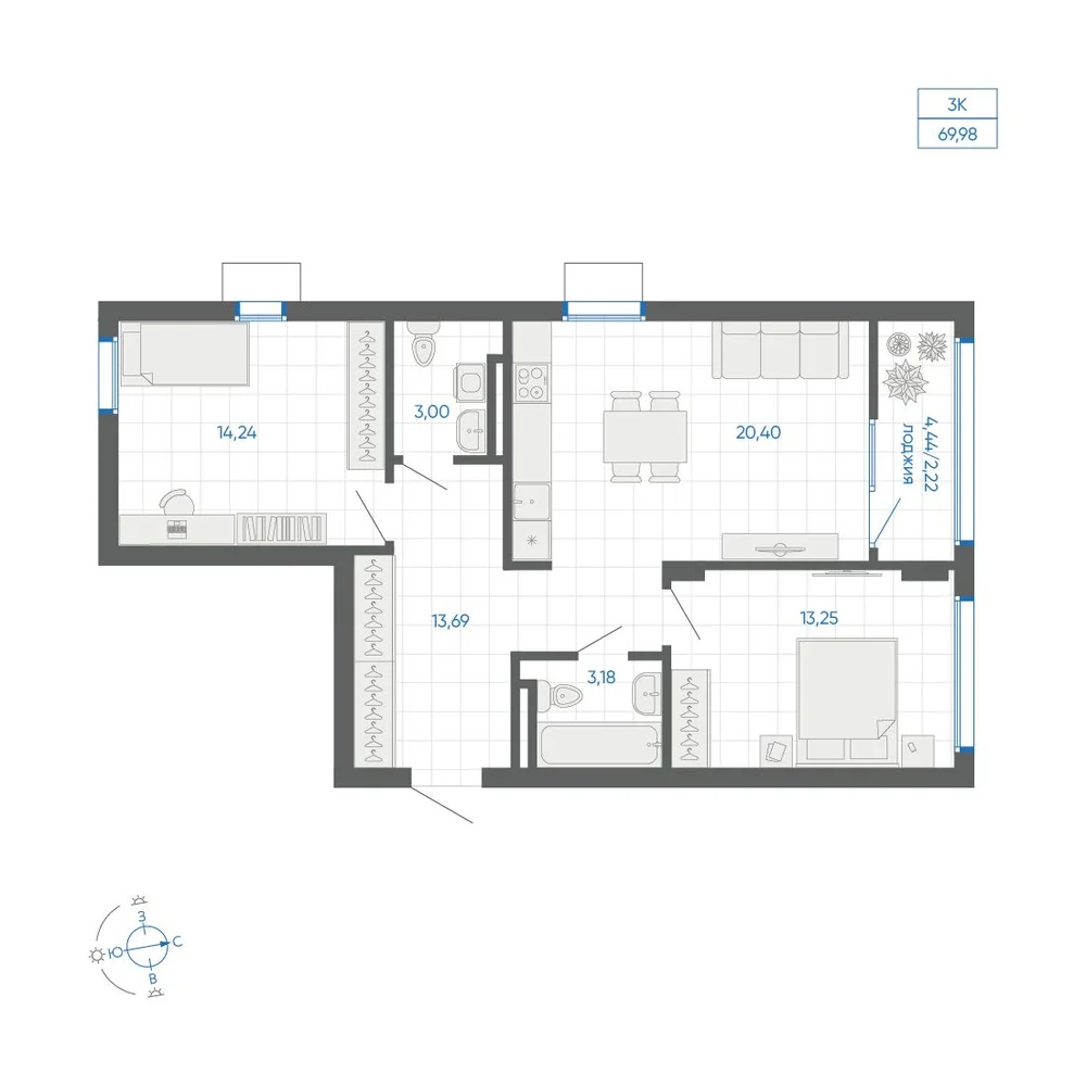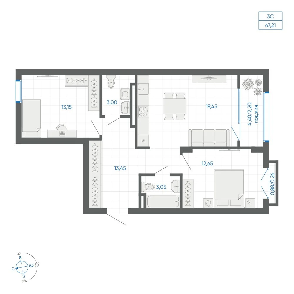 64.2 м2