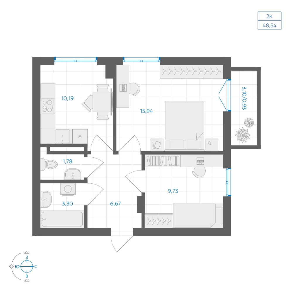 Дом А3.1-3, Секция 1, Этаж 9