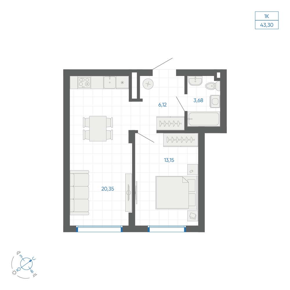 2-комнатная 48.13 м