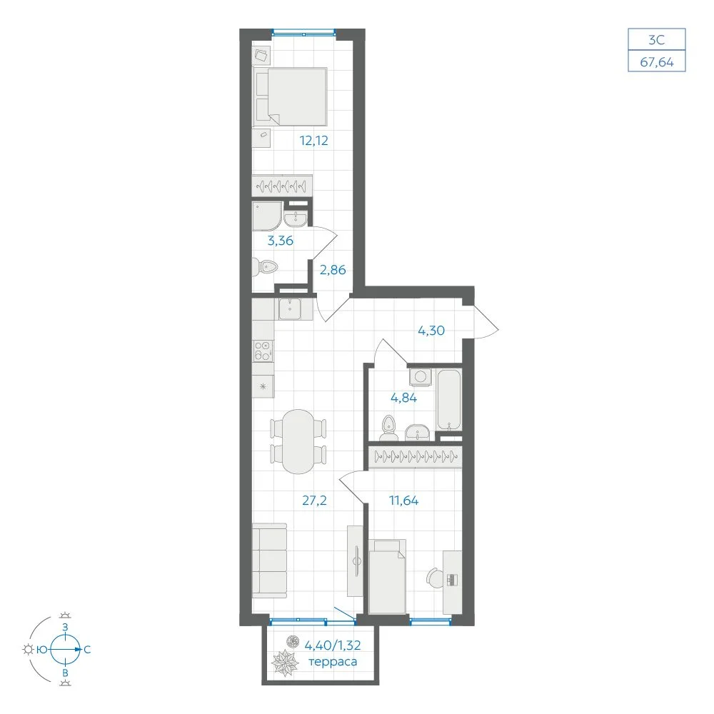 67.8 м2