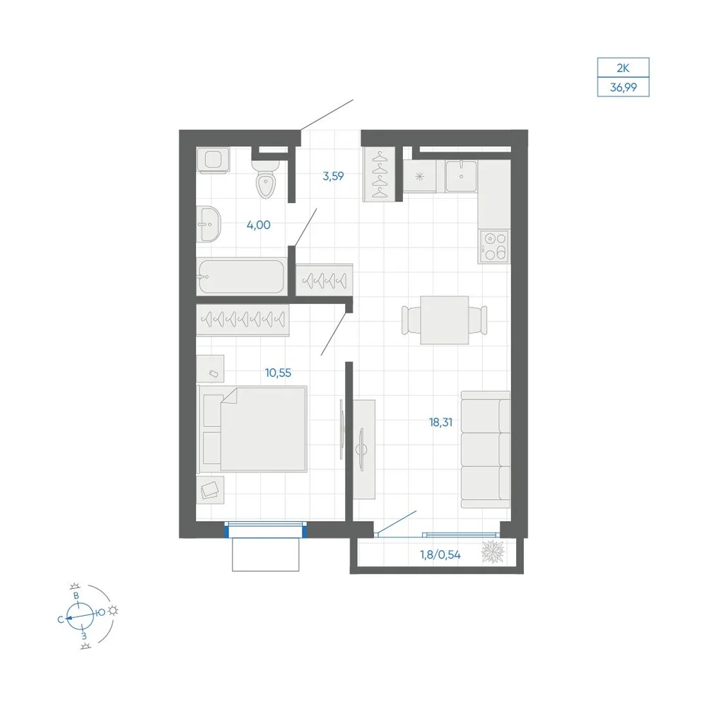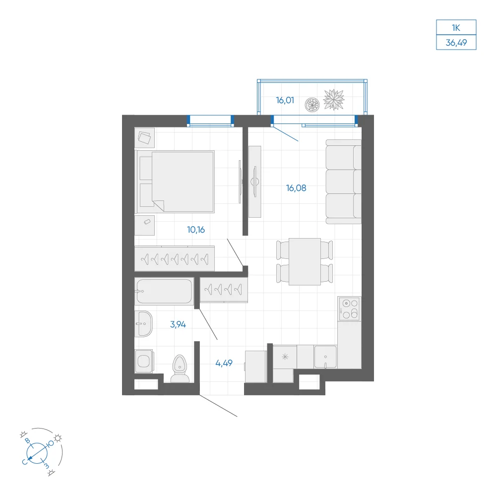 1-комнатная 35.22 м