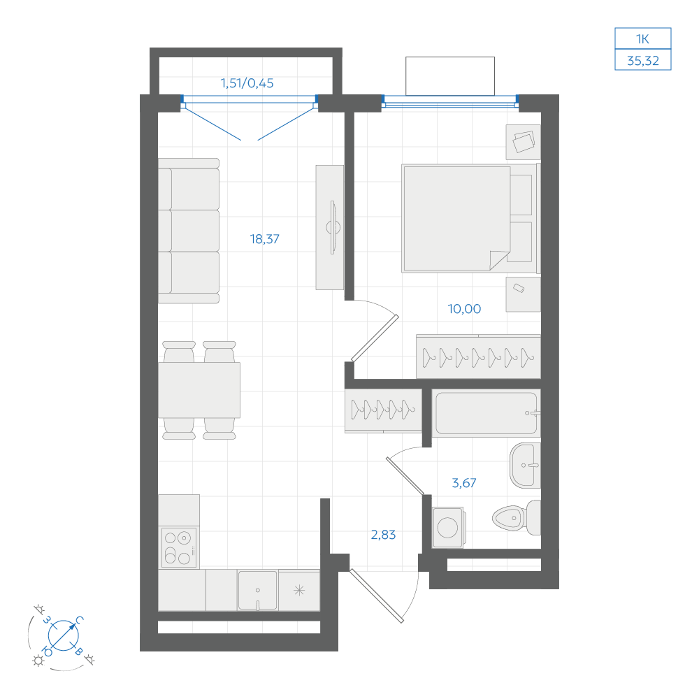 1-комнатная 36.06 м