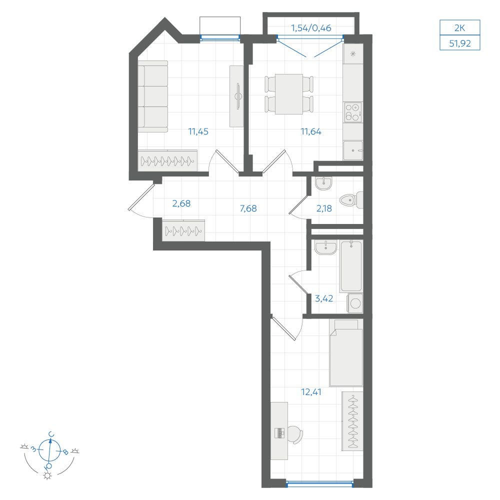 Дом 5.2.1-2, Секция 2, Этаж 1