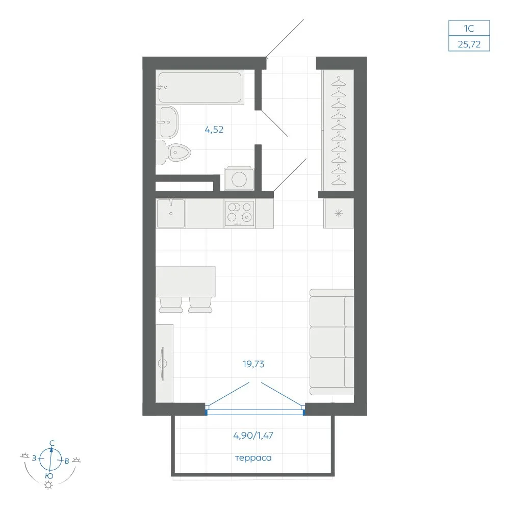 Студия 24.67 м