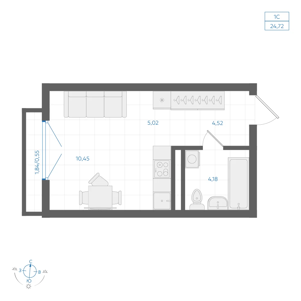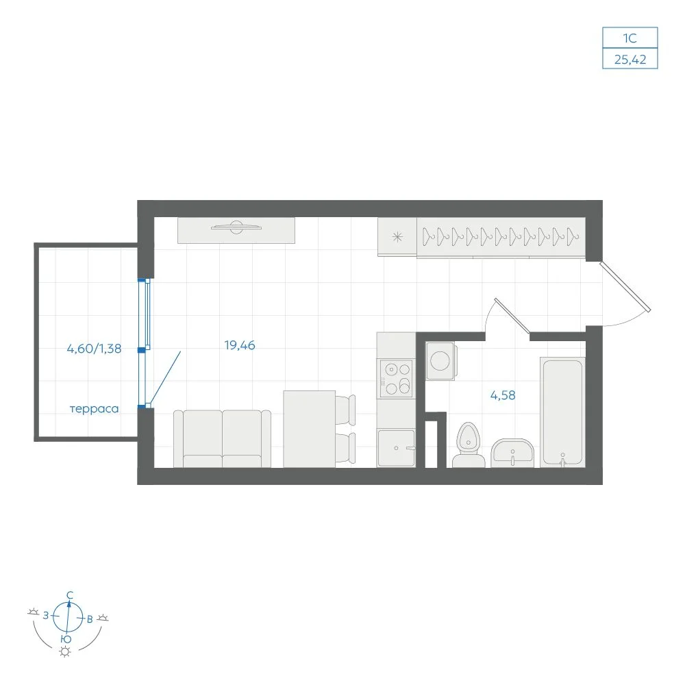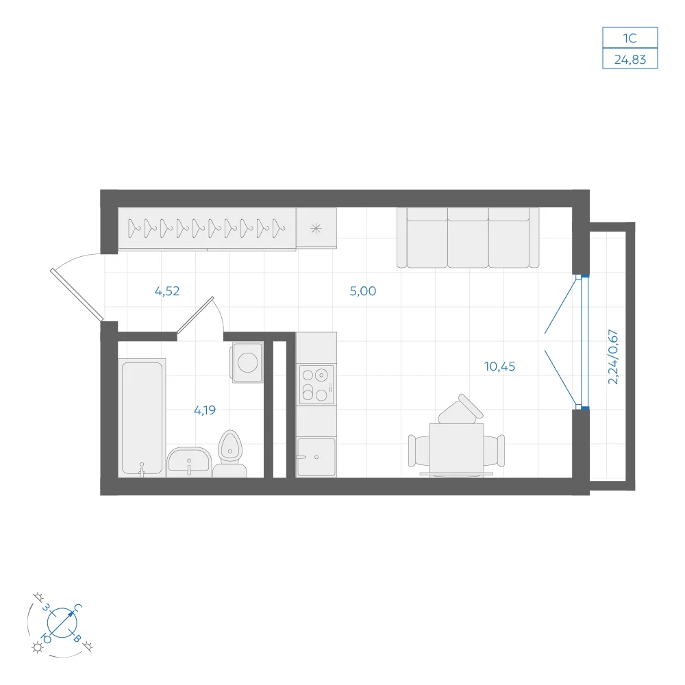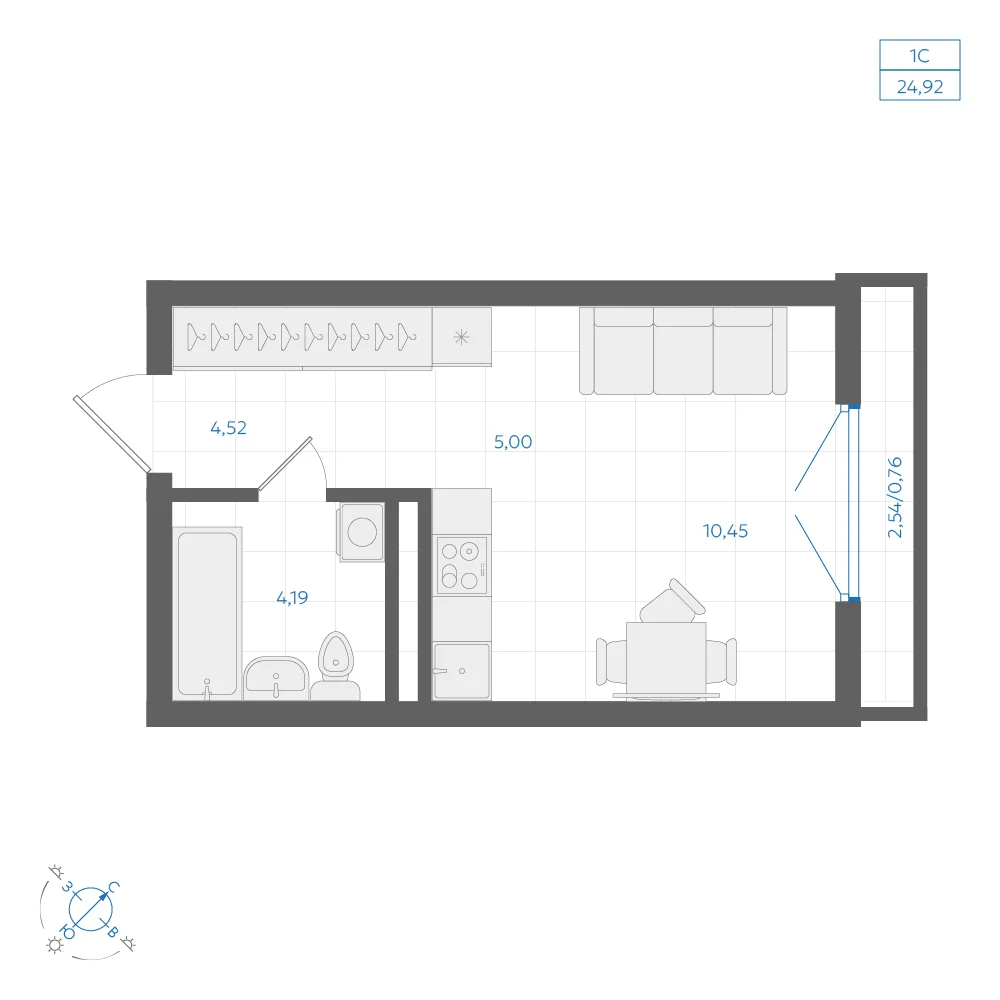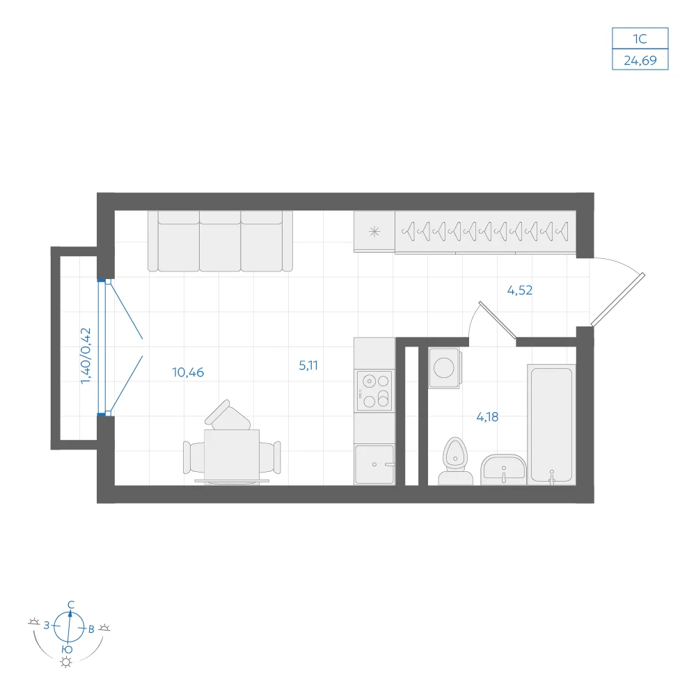 Студия 24.93 м