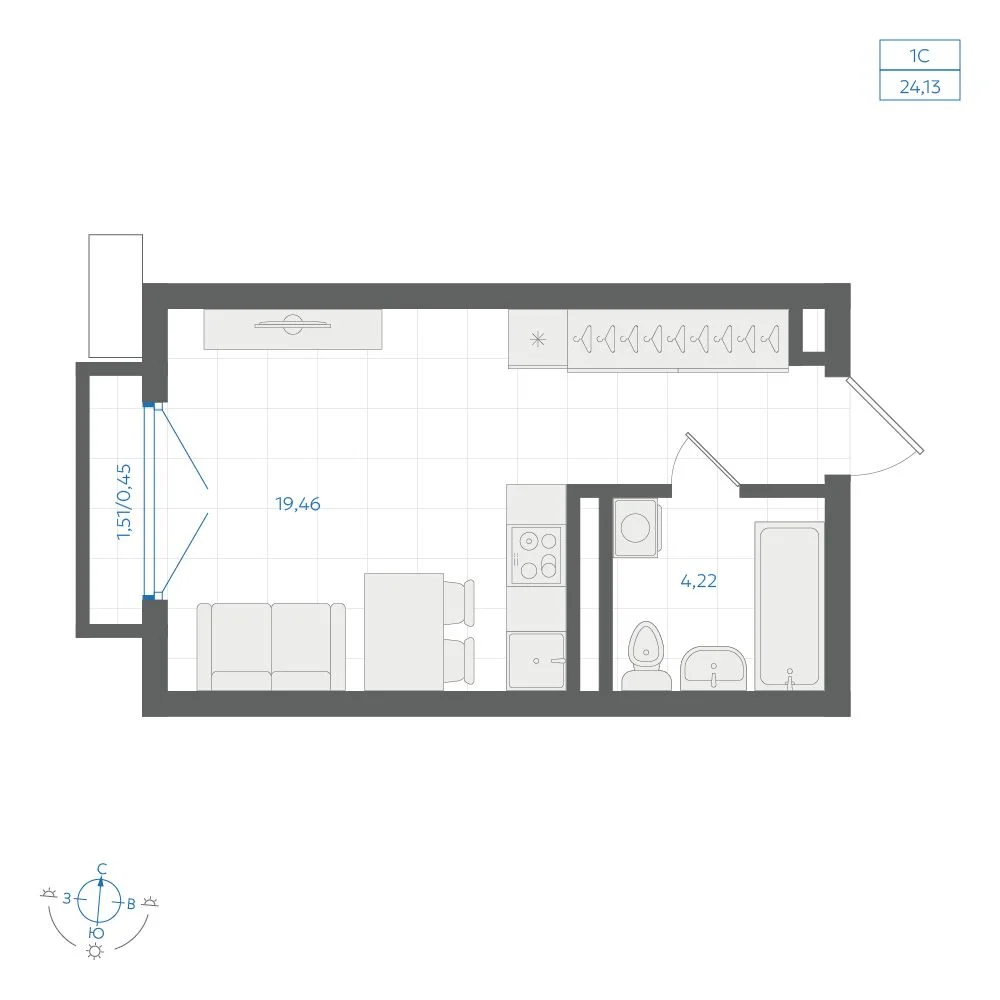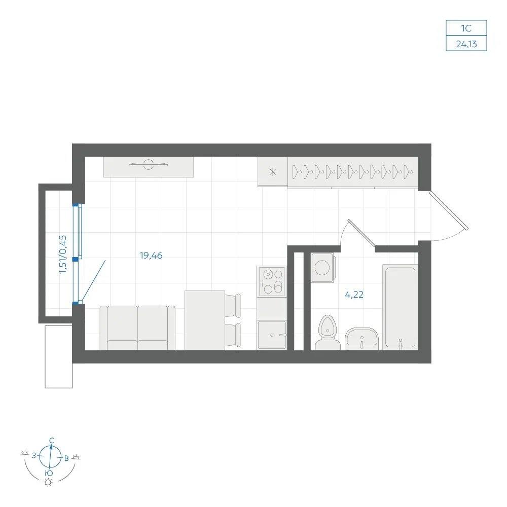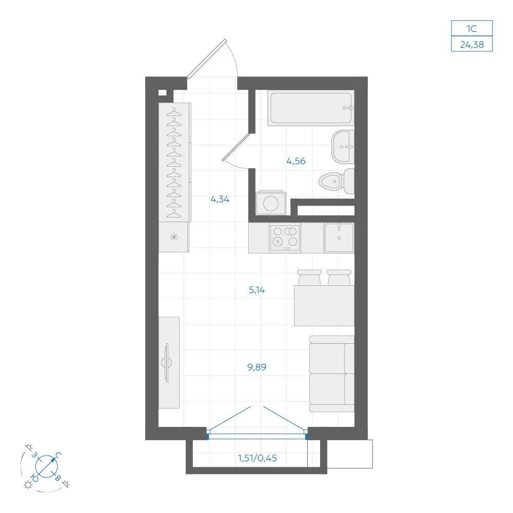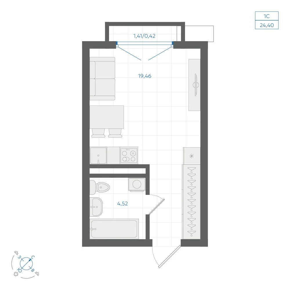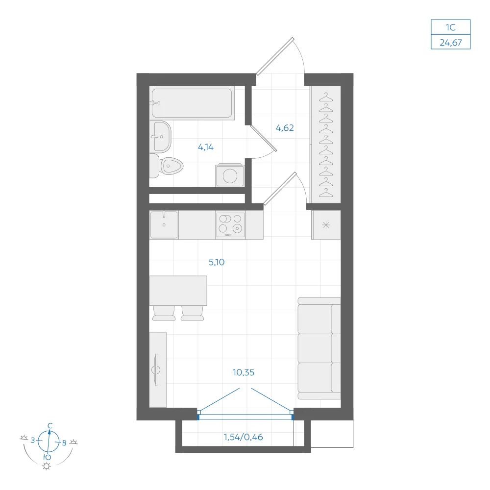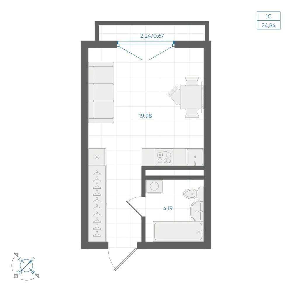 Студия 24.93 м
