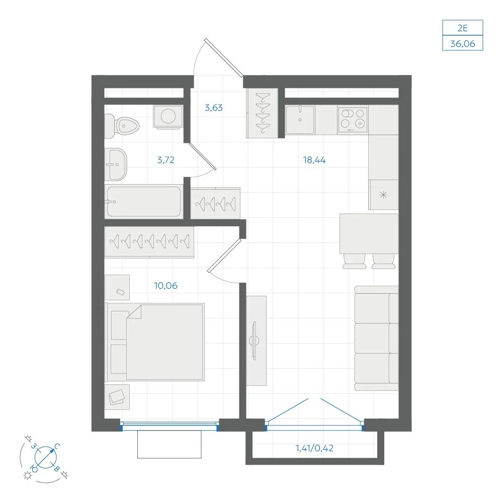 1-комнатная