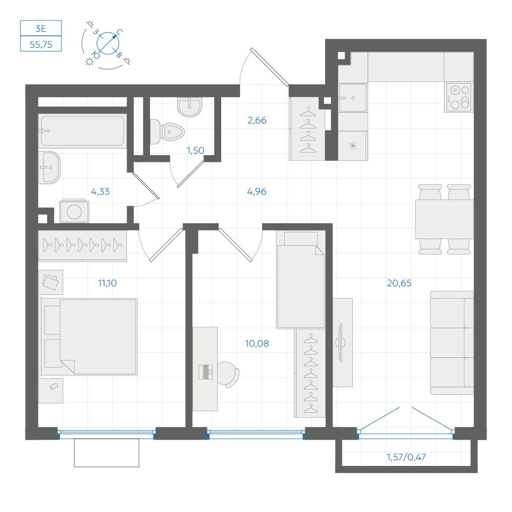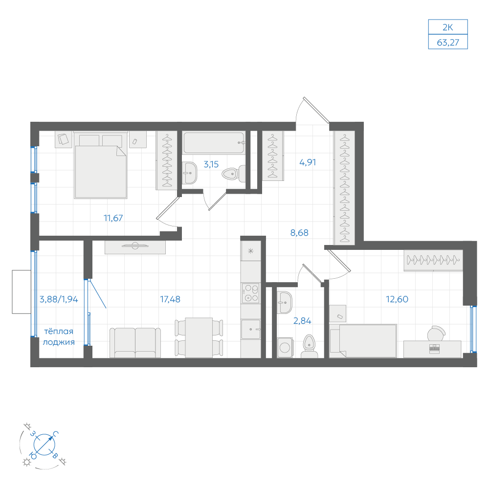 2-комнатная 61.59 м