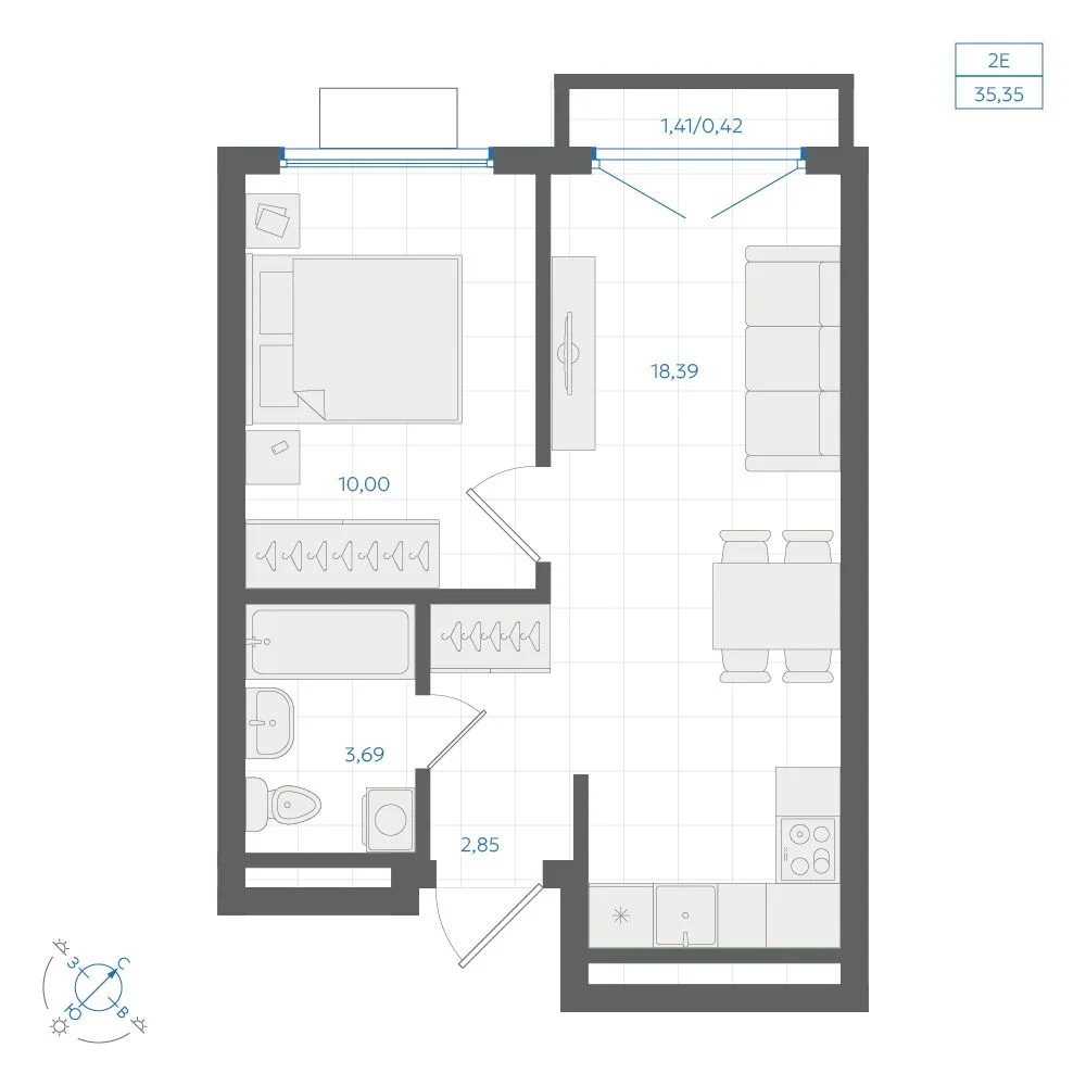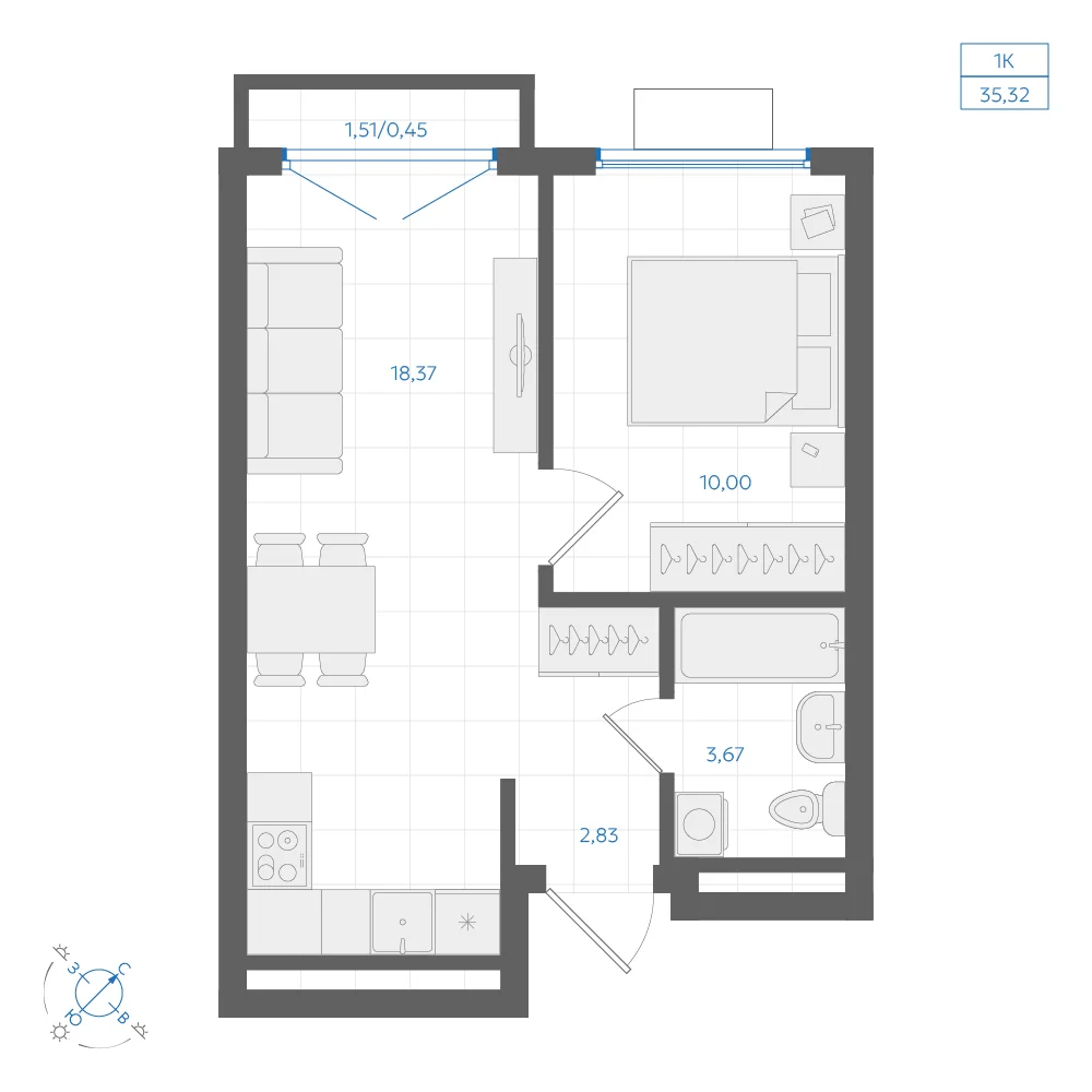 1-комнатная 34.53 м