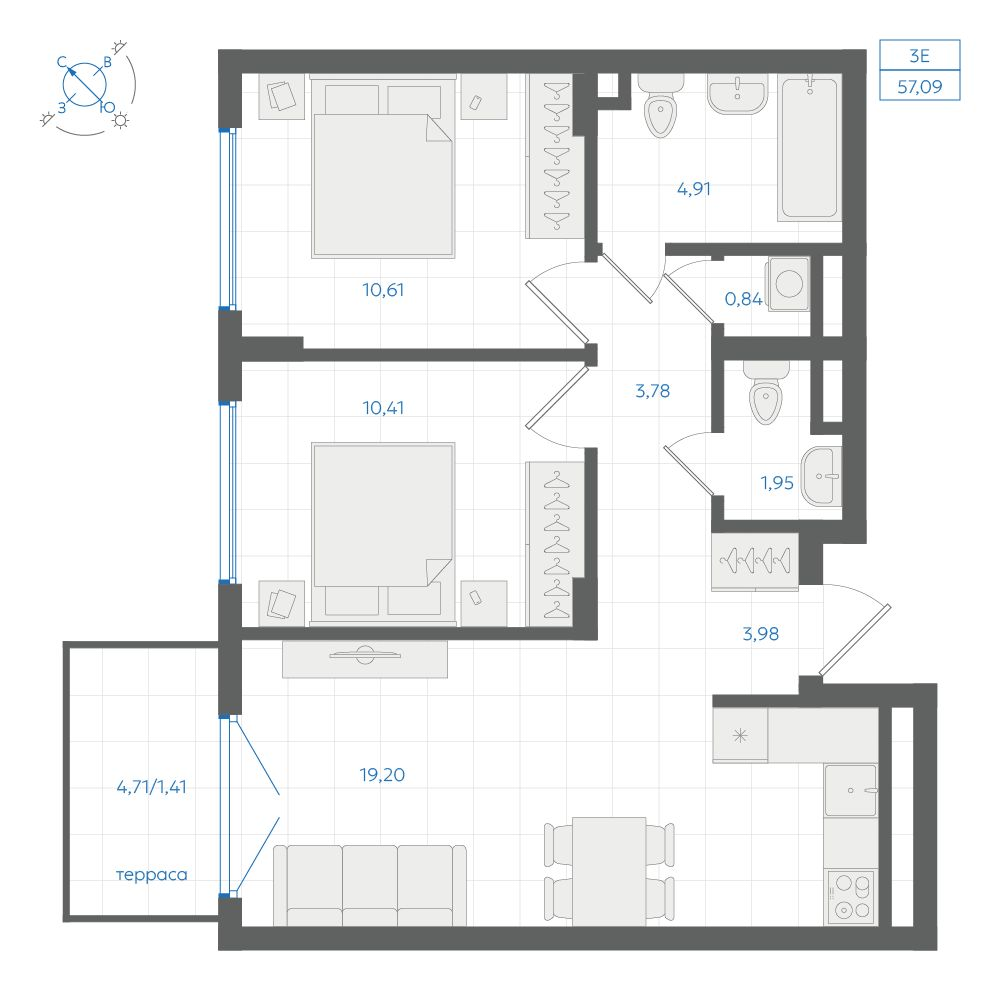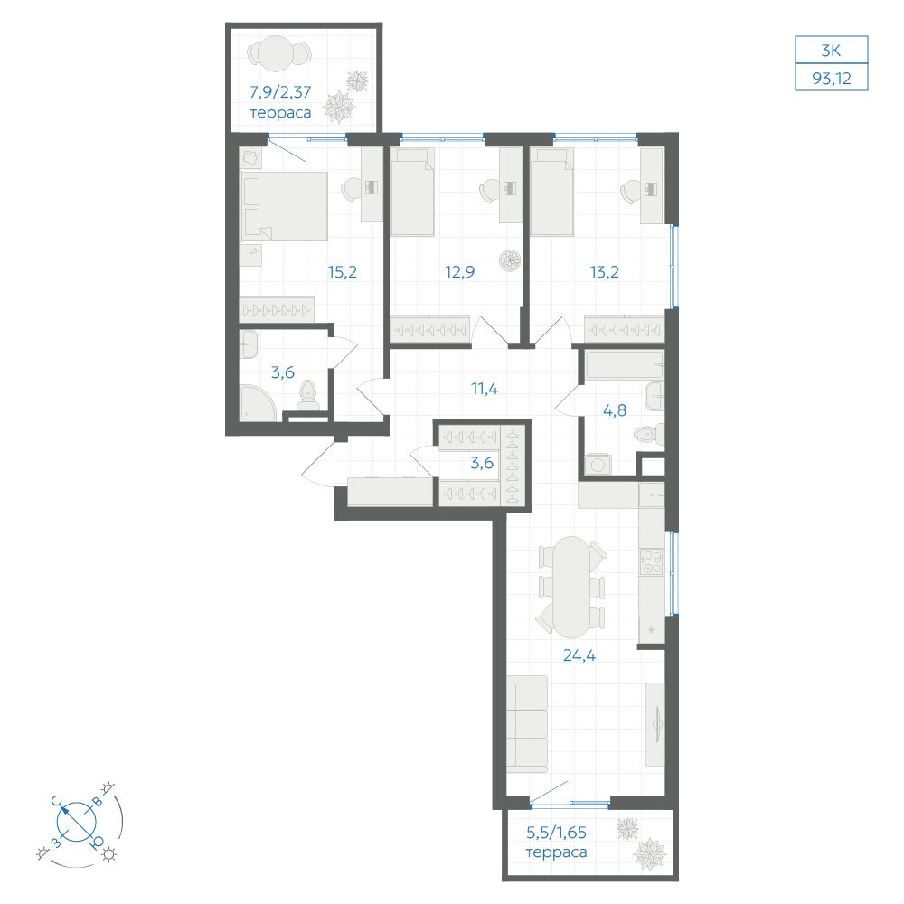 - № 3Квартал КЛЕВЕРДом 3.1, Секция 1, Этаж 1