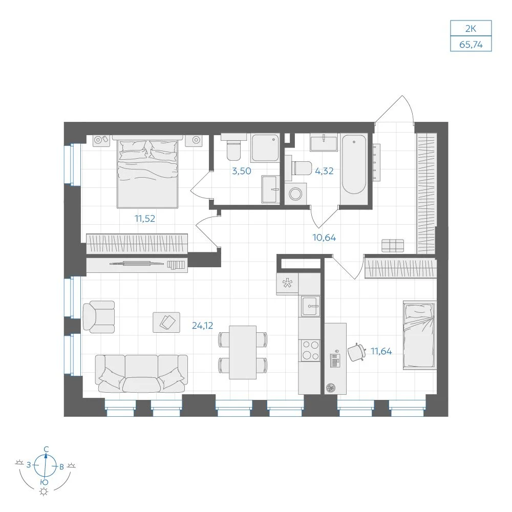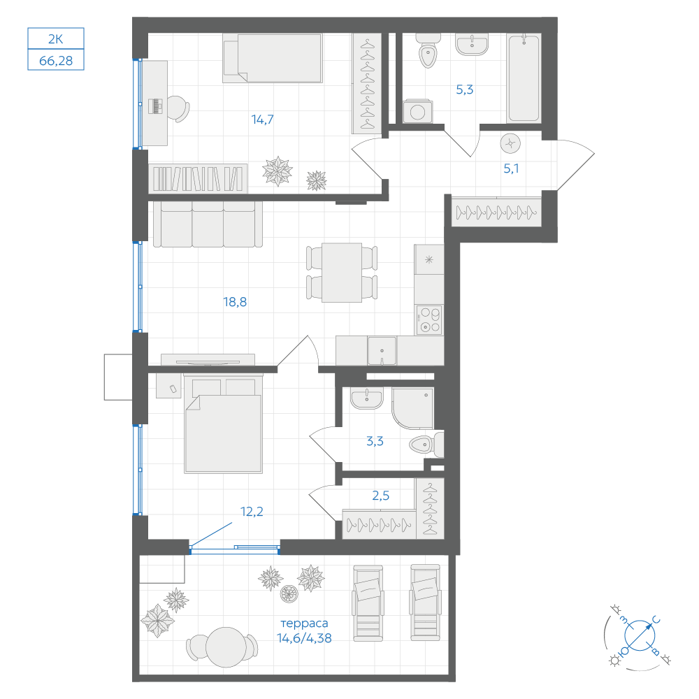 - № 2Клубный дом БольшойДом 12, Секция 1, Этаж 2