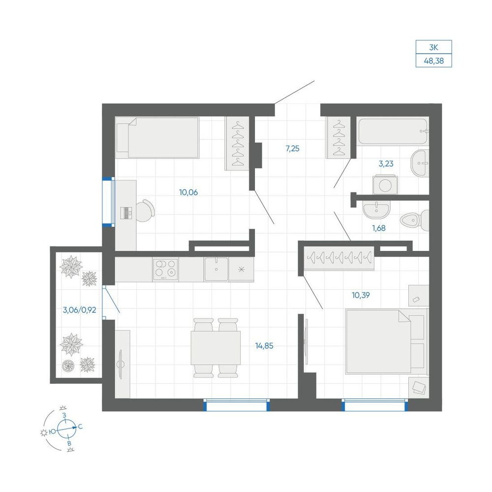 - +1 акция№ 2ЖК НовильДом А3.1-3, Секция 1, Этаж 1