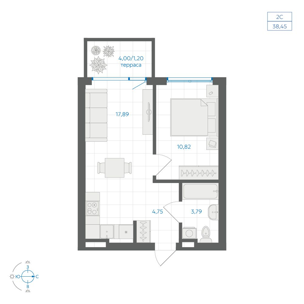 - № 3НовильДом А4.1-1, Секция 1, Этаж 1