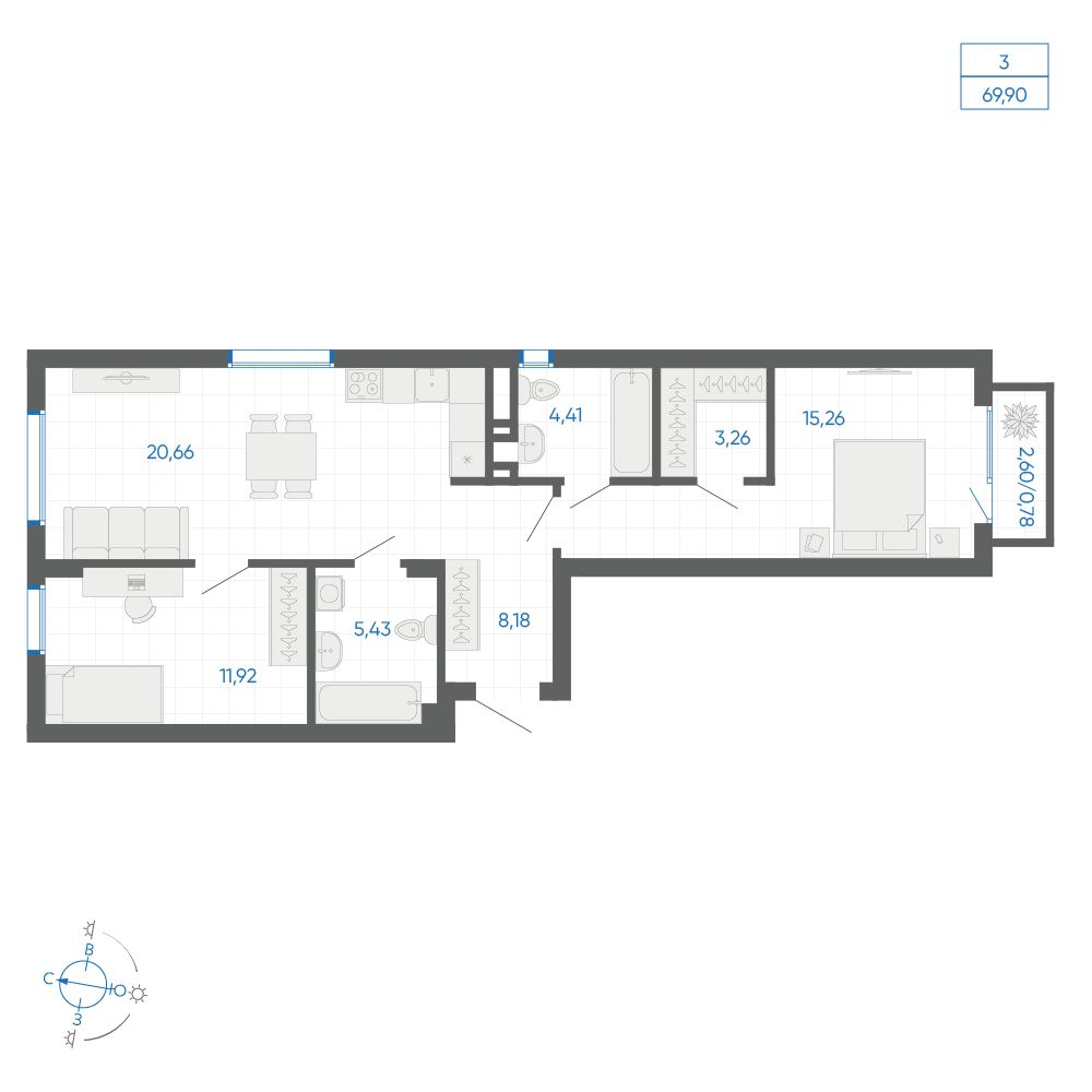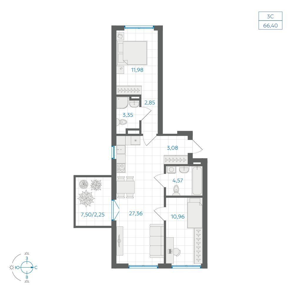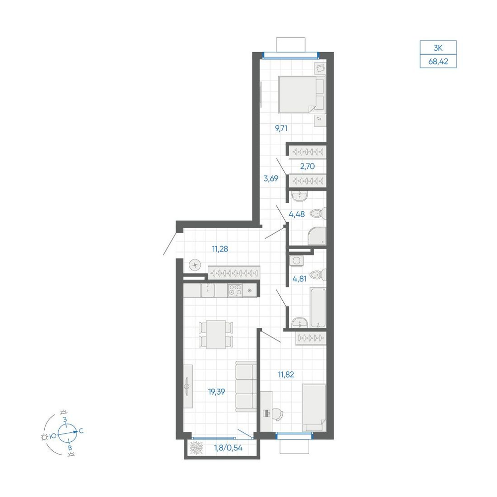 - № 7НовильДом А1.1-1, Секция 1, Этаж 3