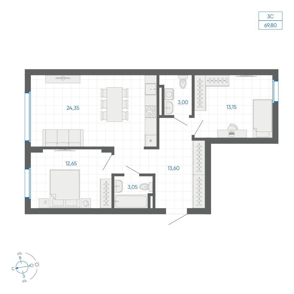 - № 3НовильДом А3.1-3, Секция 1, Этаж 1