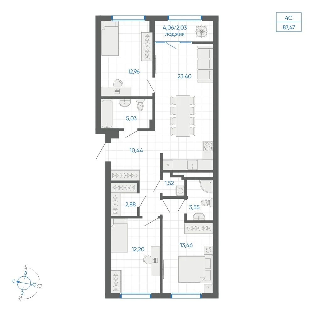 - № 55НовильДом А1.1-1, Секция 3, Этаж 6