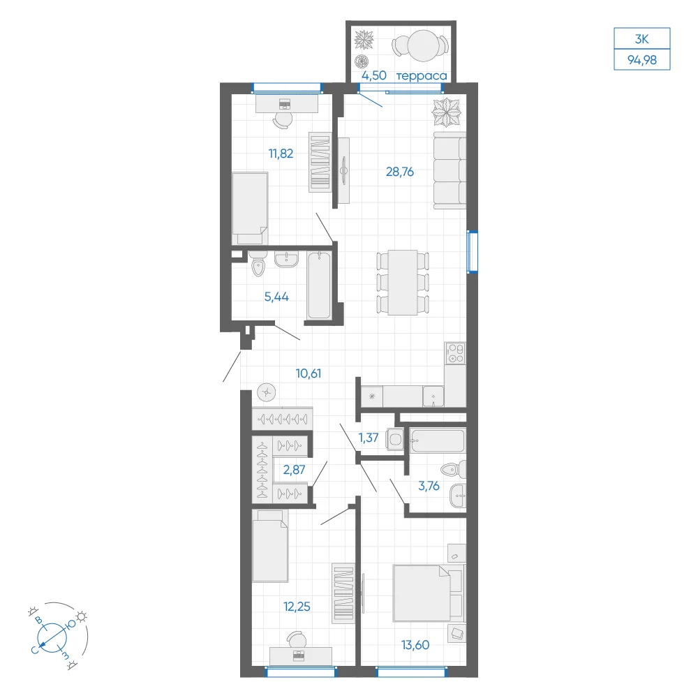 - № 44НовильДом А1.1-1, Секция 3, Этаж 3