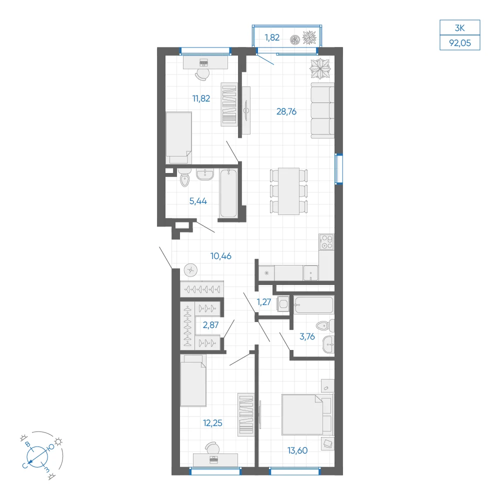 - № 46НовильДом А1.1-1, Секция 3, Этаж 3