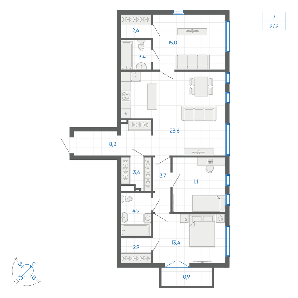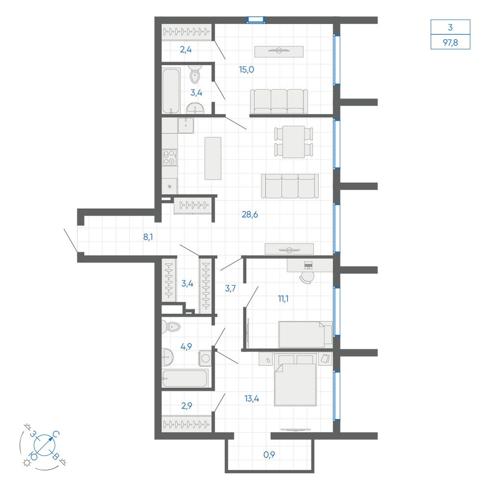 - +1 акция№ 472ЖК FIRST12.6, Секция 3, Этаж 15