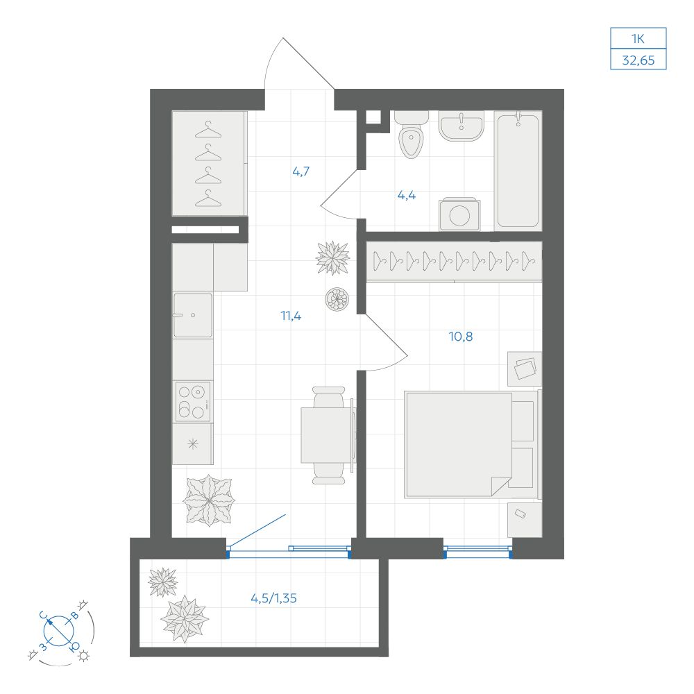 - № 45КлеверДом 2.1, Секция 1, Этаж 7