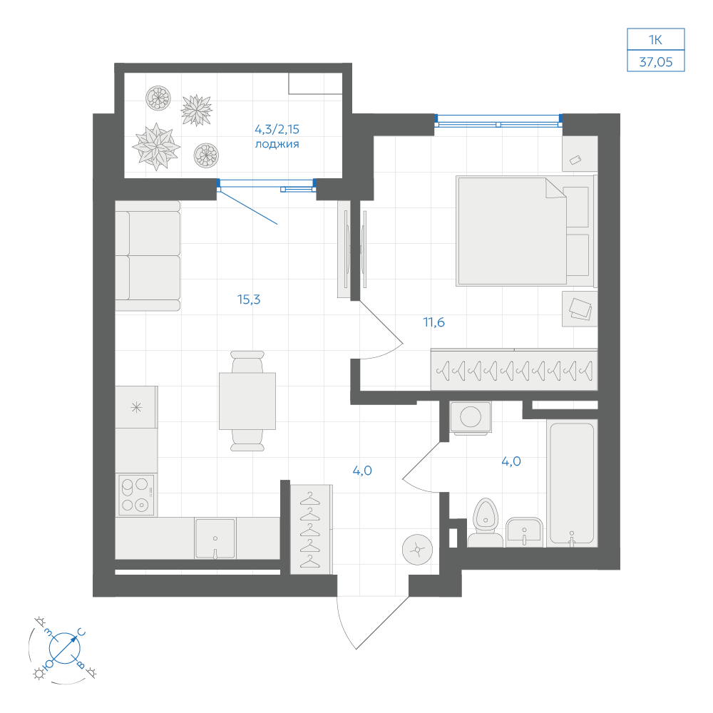 - № 56КлеверДом 3.1, Секция 2, Этаж 1