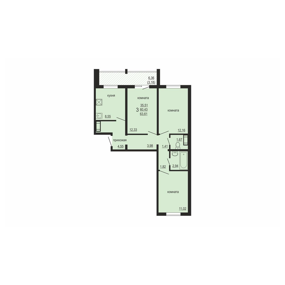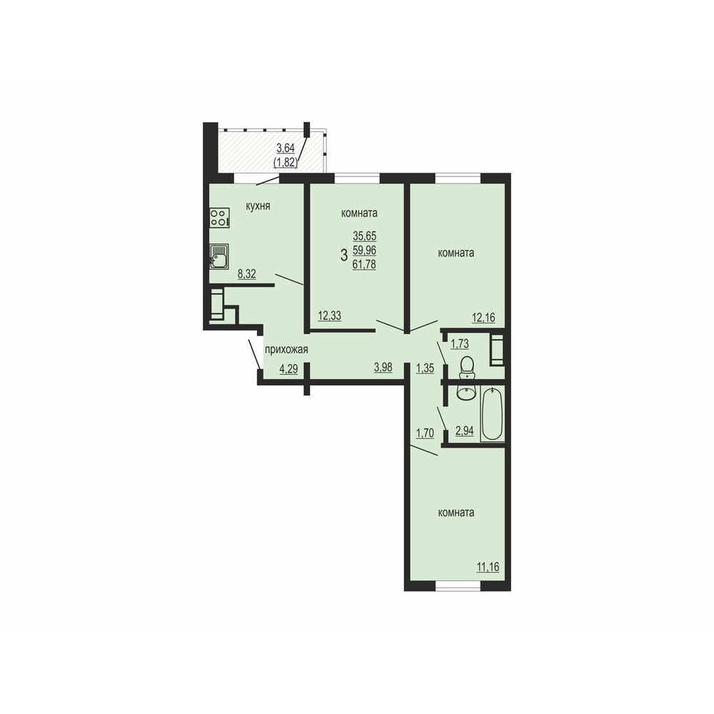- +1 акция№ 140ЖК КонфеттиДом 3, Секция 4, Этаж 1