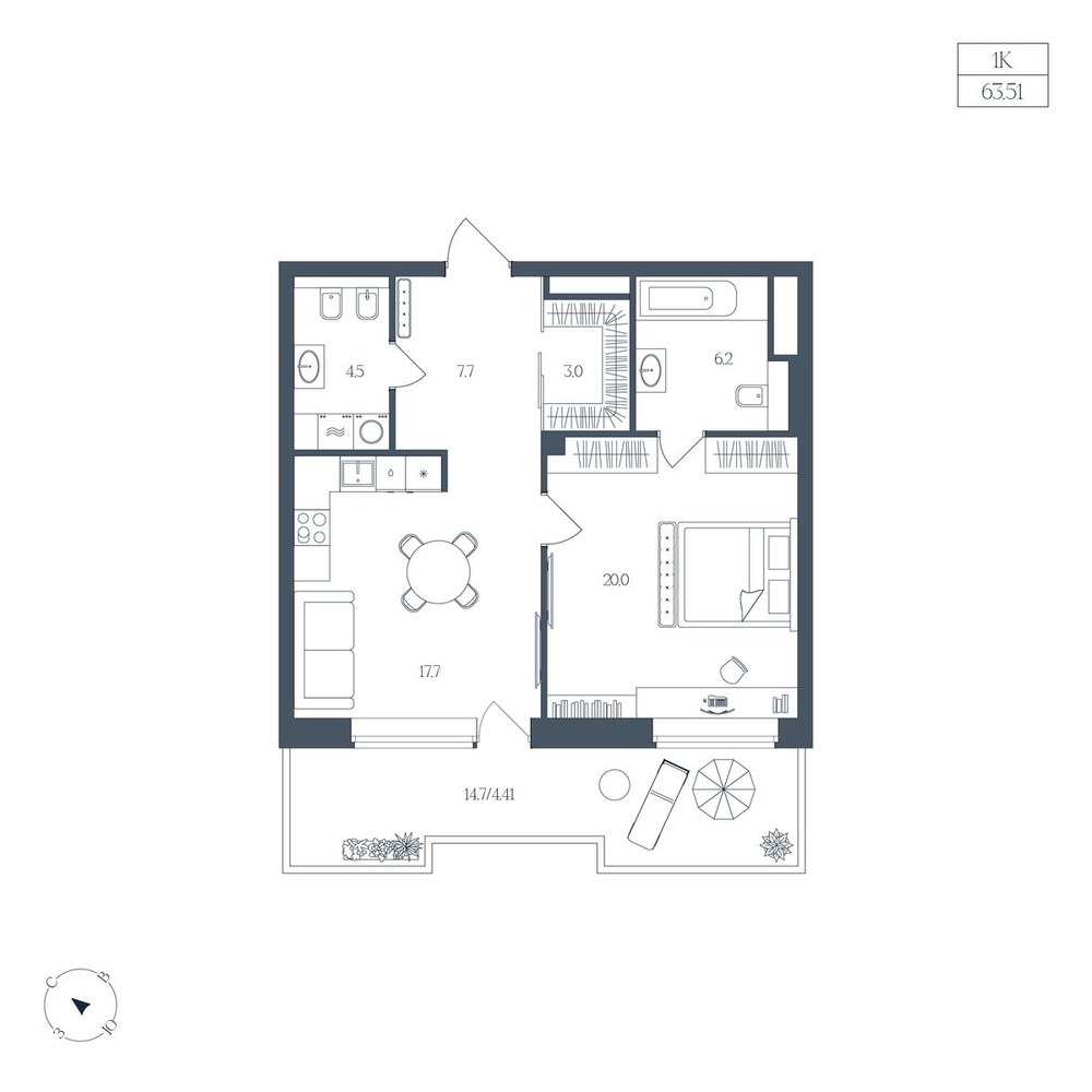 - № 52Клубный дом БольшойДом 12, Секция 2, Этаж 7