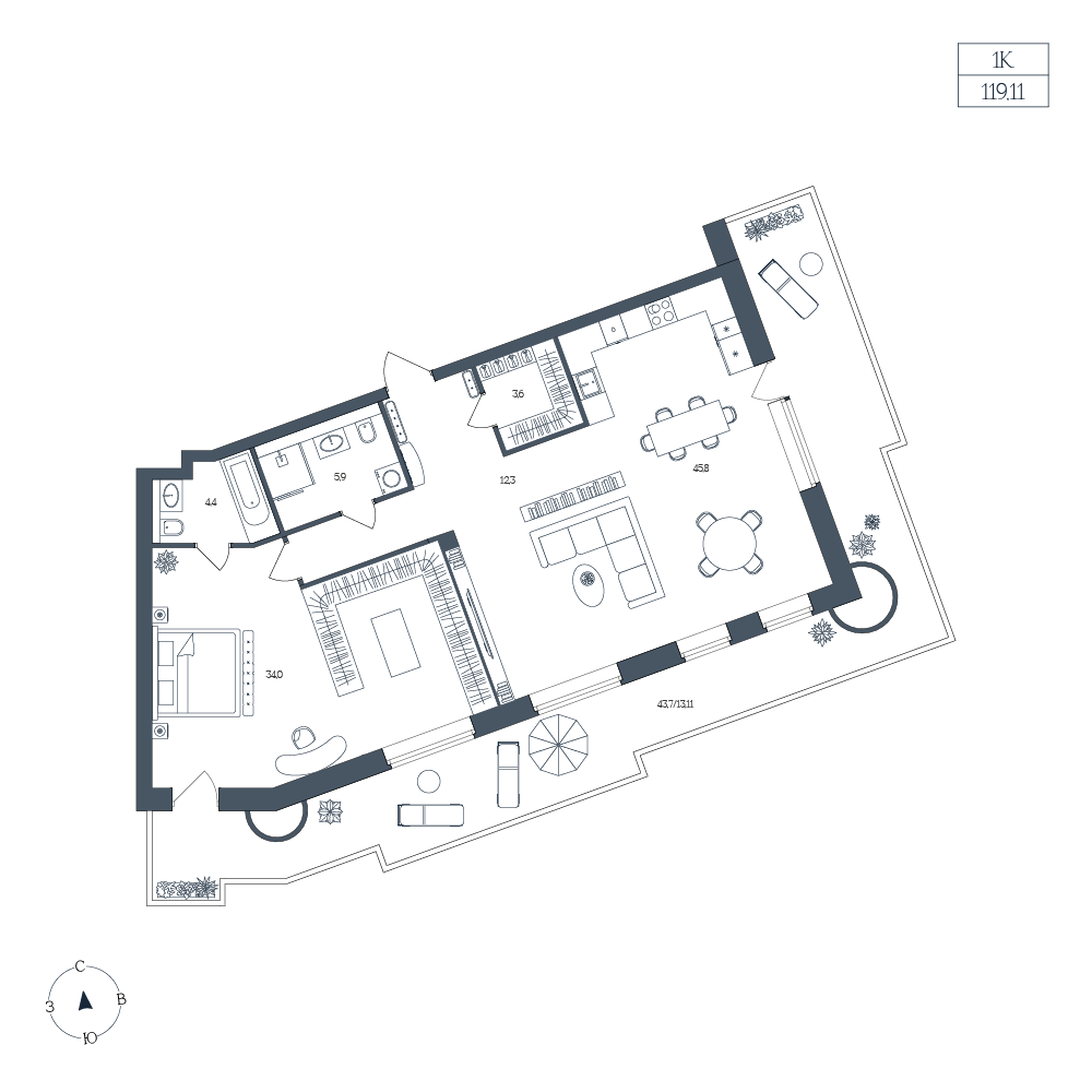 Забронировано - № 10Клубный дом БольшойДом 12, Секция 1, Этаж 4