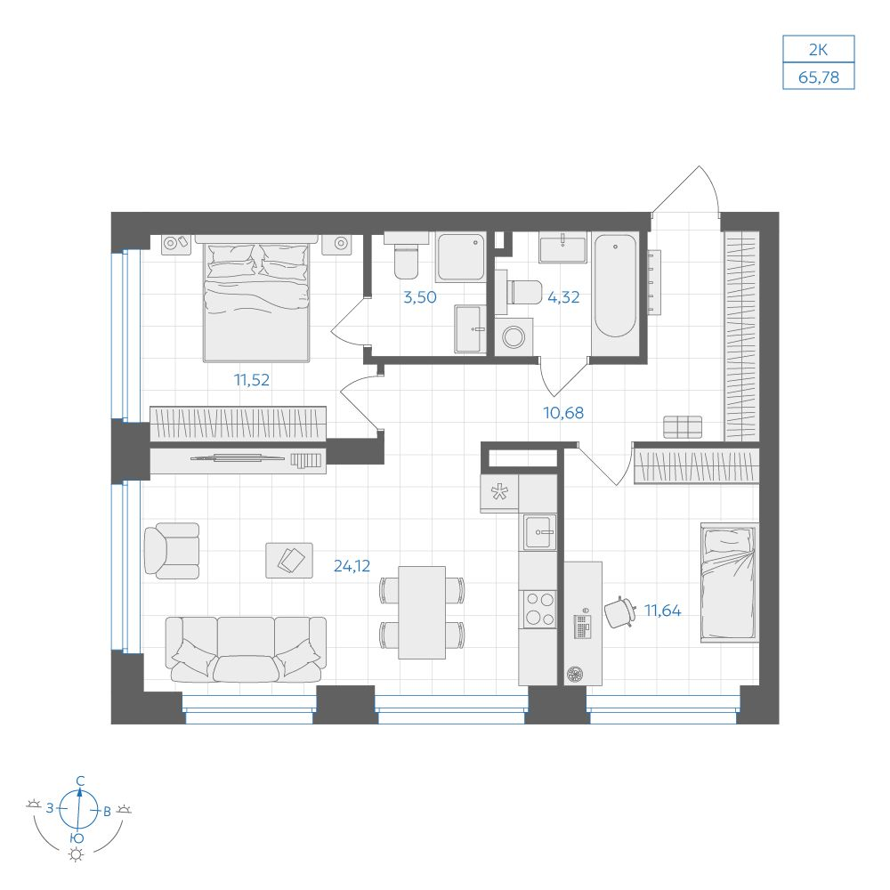 - № 12Высота 323Дом, Секция 1, Этаж 3