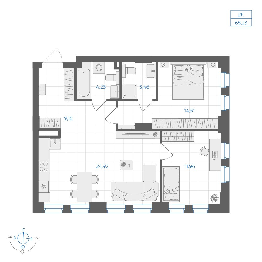 Забронировано - № 3Высота 323Дом, Секция 1, Этаж 2